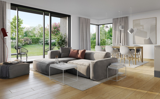 Architektonický návrh klade důraz na elegantní design a komfort bydlení. Domy jsou charakteristické jedinečným propojením interiéru s exteriérem prostřednictvím velkorysých francouzských oken a HS portálů, které zajišťují dostatek přirozeného světla a pocit volného prostoru. Vysoká kvalita použitých materiálů a standardů výstavby garantuje bezstarostné bydlení na dlouhá léta.