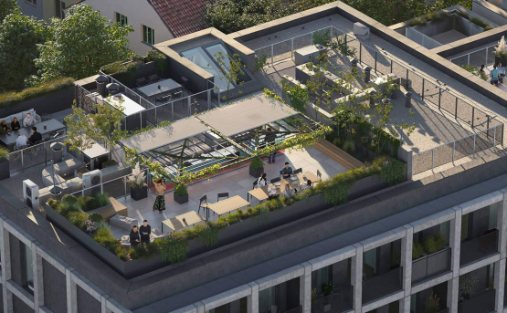 Obyvatelé JITRA mohou využívat bohaté společné vybavení: střešní terasu s posezením, kuchyňkou a prostorem pro gril, fitness, saunu, prádelnu, kolárnu, kočárkárnu i zásilkový box pro snadné doručování. Vnitroblok je uzavřen, což přináší polosoukromý prostor mezi ulicí a parkem a zároveň zaručuje klidné prostředí. Důraz je kladen i na technologie – byty mají podlahové topení, trojskla a projekt využívá fotovoltaiku pro společné prostory a retenční nádrž pro zálivku zeleně.